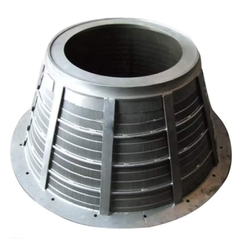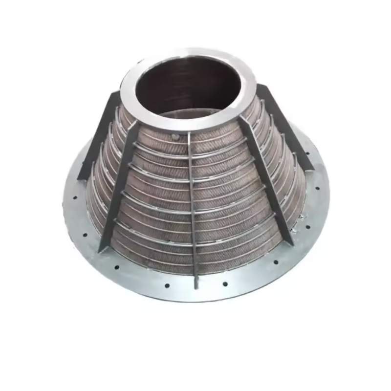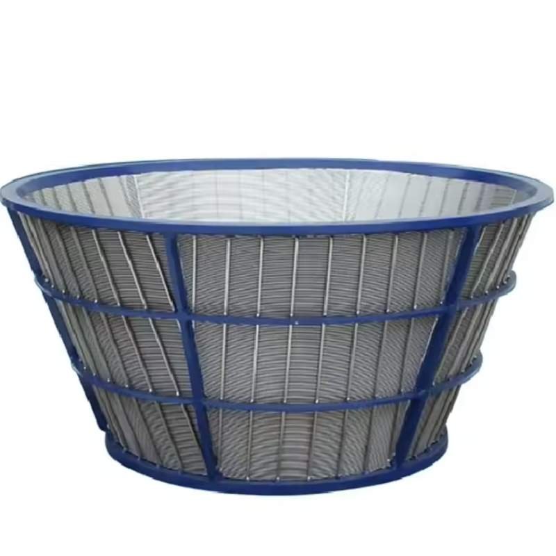 Centrifugal screen basket: A newly developed product in the wire mesh industry. It is a type of mining screen. It is called a centrifugal screen basket because of its funnel-like shape.